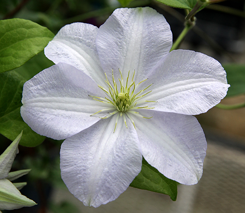 やや灰青がかる白色で、黄花芯とのコントラストが映える。