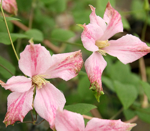 やや赤みがかる濃いピンク色の花は、徐々に淡いピンク色に変化する。